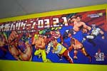 左:グッズ売り場のお兄さん、カメラを向けるとピース 右:大看板。ストUのイラストレータっぽいス