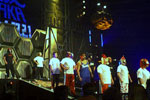 しかしさすが城ホール、天井から落下傘にのったお菓子(ばかうけ)が、紙ふぶきと共に大量に降ってくる。