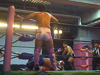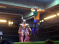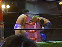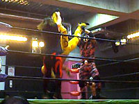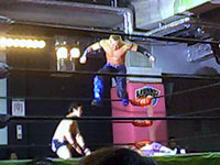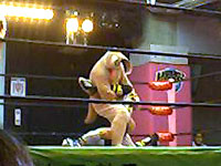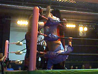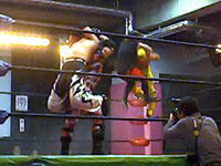 金村のマネしてリングアウトしようとしたら、びろ〜んとひっかかっちゃったえべ