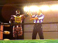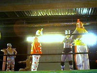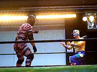 それでも執拗に攻撃を続ける愚連隊に、マスカラス登場!ってビリィがマスカラスマスクでまぐまんカルトに