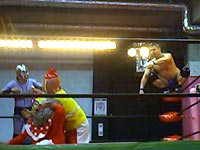 で、リング上がって、両手人差し指ぐるぐるぐる〜ってして、ミニゲッツ!で目潰し攻撃。