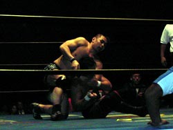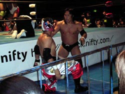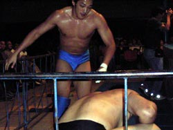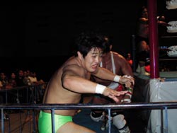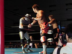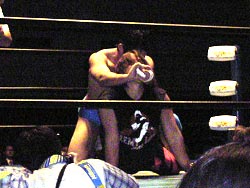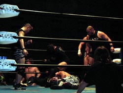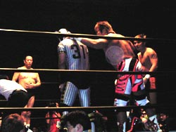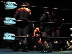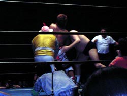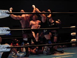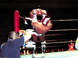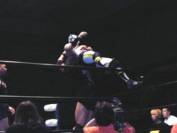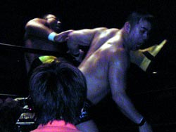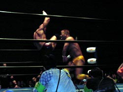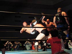 武藤がギガンテスにパワーボムを!