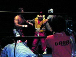 なんかずーっとしゃべってんの。リング下で。