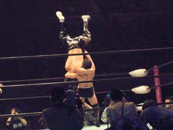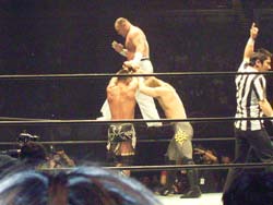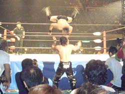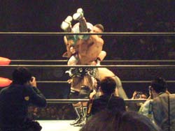 ふらふらの村浜を雪崩式不知火でしとめる。