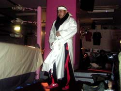 三四郎さんの、ちょっと怖いTシャツ(上写真)を着て、終わった後ささっと引き上げる「昭和」子たんでした。