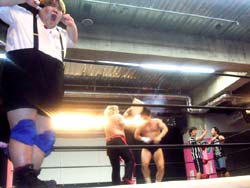デルアリやからか、スウィングDDTをするMIKAMI。あとキャトルやり返したりとか。ミニラダーやけど、MIKAMIのこういう遊び心大好き。