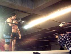 試合後、GAORAのTVに向かって、ど真ん中のリングで長州と試合したい!と泉州力に言わせる三四郎。「藤沢が健介と、俺がオースチンと出会えたように、プロレスには何が起こるかわからない!」