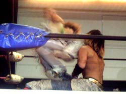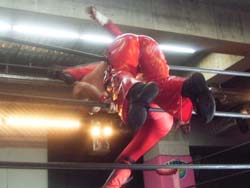 テメコノヤロチョップとかスタナーとかは見れて良かったけども、ちょっと技のミスが目立ったかも。