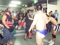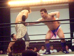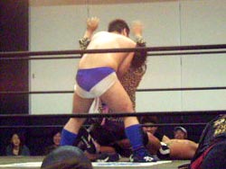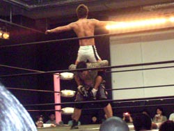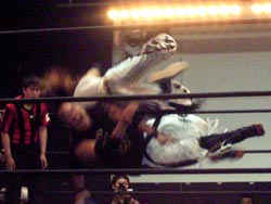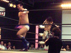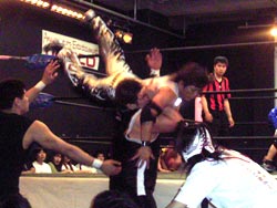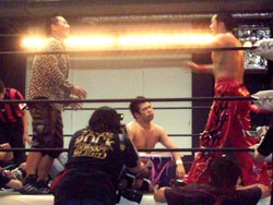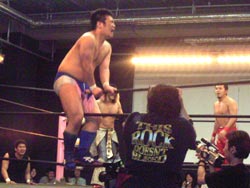 佐々木がディーノの攻撃して、ディーノがポイズンの顔面に尻餅