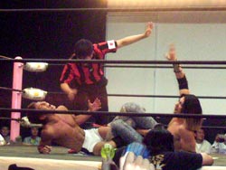 で、最後は高梨が「高梨返し」って、不思議な入り方をするウラカンで決めて、3カウント。ブラボー。