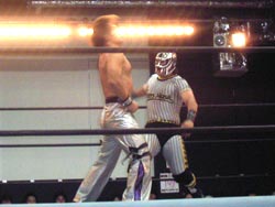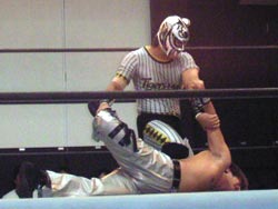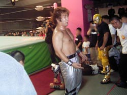 タイガース、入場時、ガウンを肩にかけてコーナー立って、キッて後ろ向くんはカズ・ハヤシのマネって事かしら。