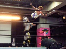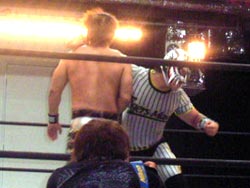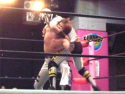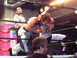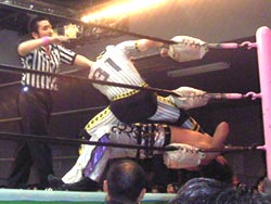 社長をフォールしたくいさんを、さらに上からえべが片エビきめて終了。