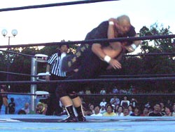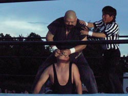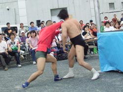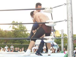谷口、弁慶を捕まえ裏投げしようとするも初期段階でつぶされる。