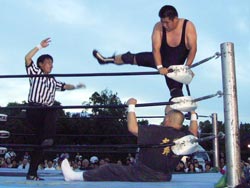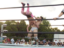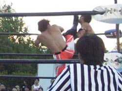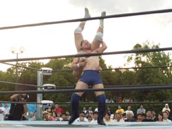 バックドロップを返す篠原 |