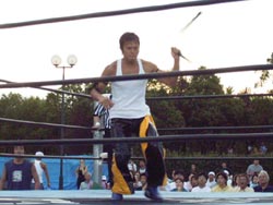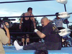 リング下を移動する谷口 |