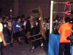 再び場外。机で関本をガコーン。たぶん。(向こう側で見えず)