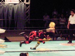 写真がわかりずらいけどコーナーにいたゴアビリィを差ぶるで落とすカルト |