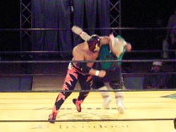 張り手対決から、タイガースがタイガーススープレックス。ビリー返してコウモリ吊り落とし。さらに丸め込み。タイガースが丸め込み返すがビリーが返す。