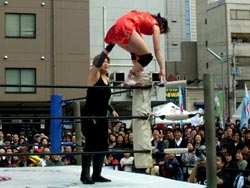 場外戦も、まわり中を練り歩いて逃げ惑う客にフェイントしたり、お楽しみたくさん。
